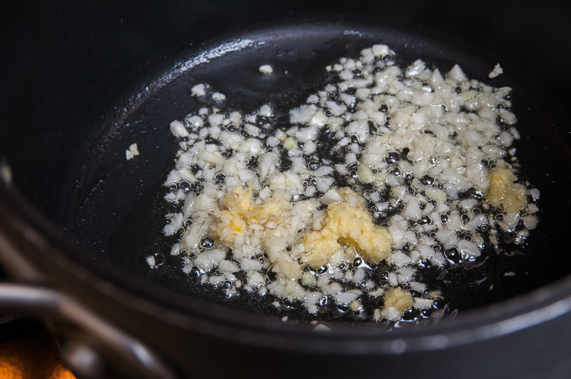Heather Victoria Photography_Salmon in Black Bean Sauce-01In a small saucepan, heat oil over medium heat.  Add garlic and ginger and sauté until garlic starts to turn golden, about 1 minute.