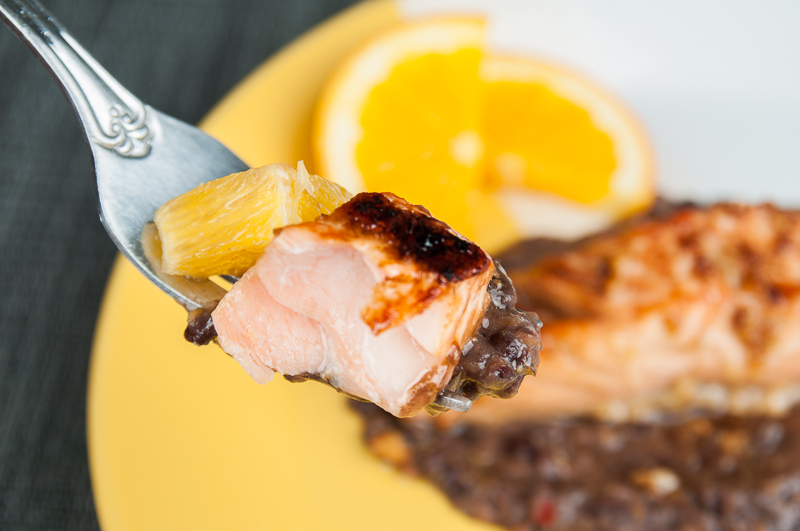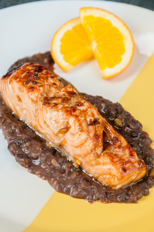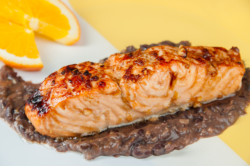 It’s no secret that eating fish is good for you, salmon just happens to be one of my favorites.  Marinated in a garlicky, Asian-style sauce and then broiled to a tender perfection gives this salmon a harmonious flavor.  Served over a zesty, oranged fusion Black Bean Sauce is a sublime compliment to spruce up a classic, healthy fish meal. Garlic Salmon is full of flavor, as well as beneficial omega-3 fatty acids, cancer-protective garlic, and fiber.  It will sure to be a delightful dinner fare.  Read more from the American Institute for Cancer Research on the benefits of this dish at AICR.